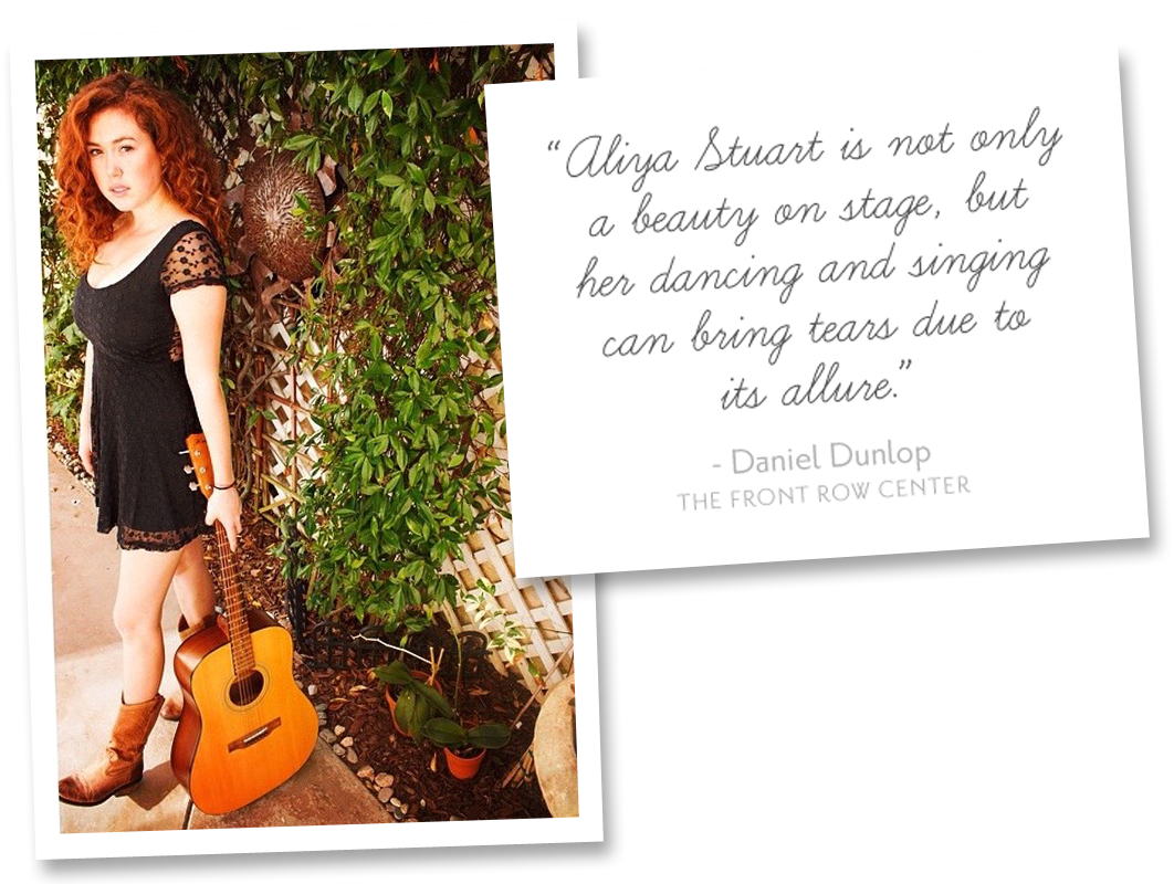 For over twenty years, Aliya has been singing, acting, dancing, and writing songs in her home of Southern California. After graduating from UCLA, Aliya spent a year in New York performing in the Off-Broadway musical, “One Day.” She then returned and placed as a top finalist in LA’s Next Great Stage Star, and signed with Across the Board Talent Agency. Aliya has performed for the past four years at Disney’s California Adventure, singing with live bands and musical trios.